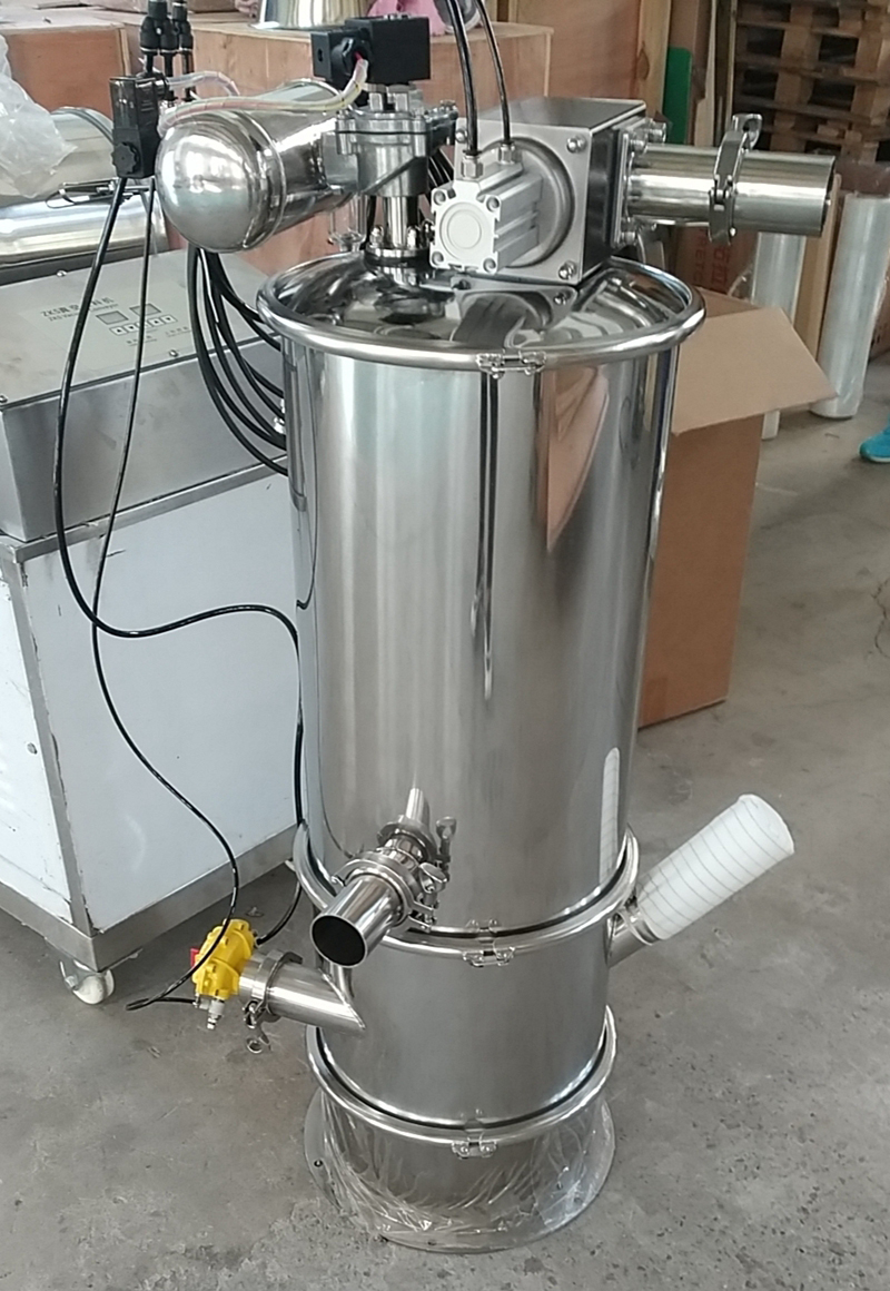 真空上料機是一種借助于真空吸力來傳送顆粒和粉末狀物料的無塵密閉管道輸送設備。利用真空與環境空間的氣壓差,形成管道內氣體流動,帶動物料運動,從而完成物料的輸送。該機能自動將物料輸送到包裝機、注塑機、粉碎機、混合機中,減輕了人工勞動強度,解決了加料時粉塵外溢等問題。現廣泛應用于化工、制藥、食品、冶金、建材等行業。
