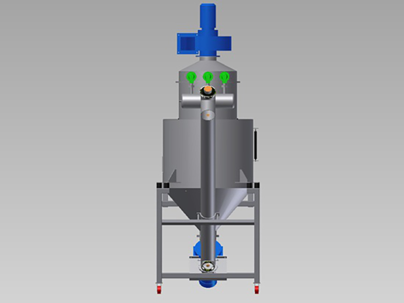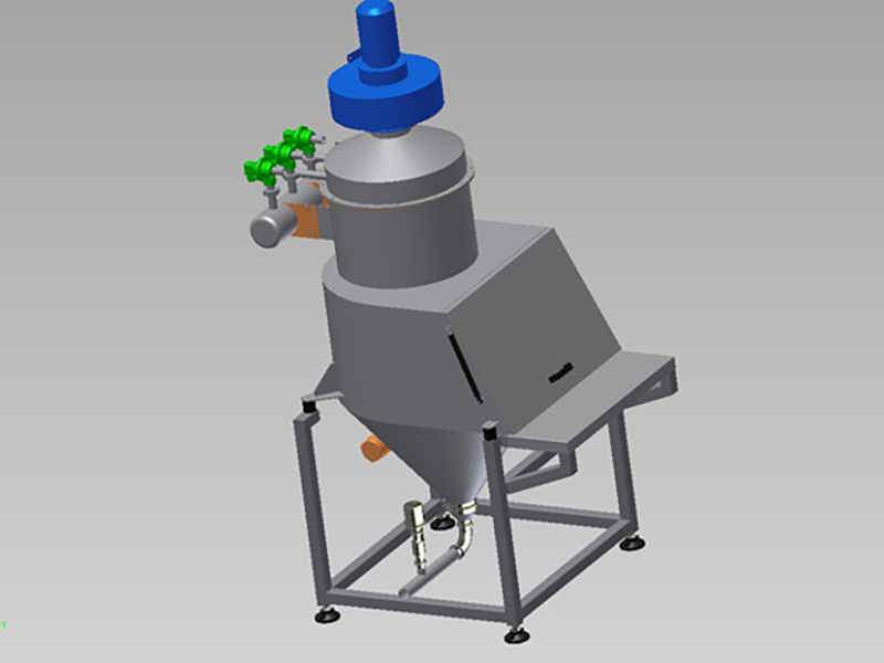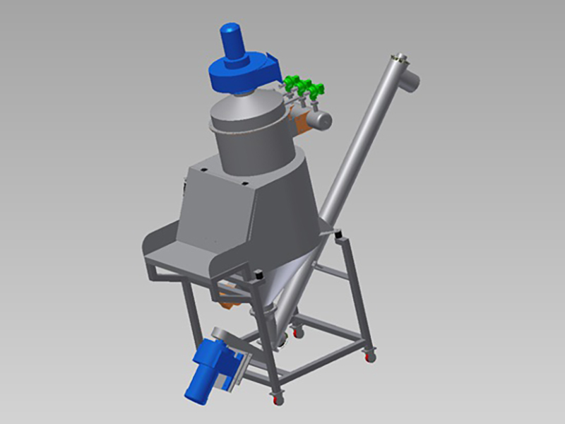 該機主要由人工倒料倉、操作臺(內置網格)、過濾系統、除塵風機、脈沖反吹裝置等部件組成。通過人工拆袋、倒料等步驟使物料靠重力落進下游料倉中,來完成投料工作;投料時所產生的粉塵通過過濾系統,由除塵風機進行收集;脈沖反吹裝置可將吸附于過濾器表面的粉末打落下來,避免未及時清理過濾器吸附過多粉塵,而影響除塵效果。可與螺旋上料機、真空加料機等配套使用。